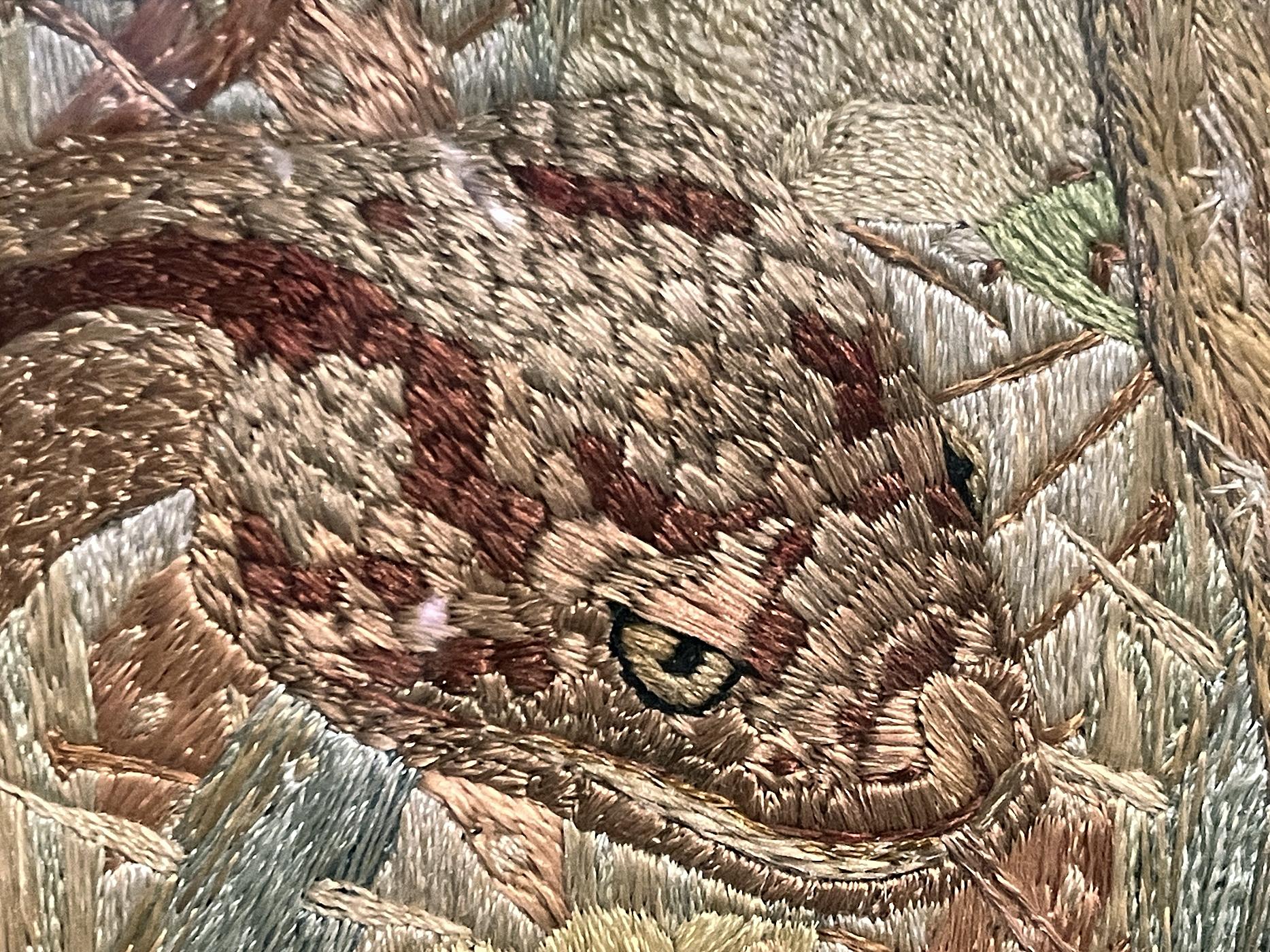 Ces comparaisons pour montrer à quel point la broderie de Marie Monnier est fidèle aux matériaux et aux techniques développées depuis l’antiquité[8] et à quel point son talent va bien au-delà d’une simple « distraction » comme le suggère la notice[9] du cartel de l’œuvre.